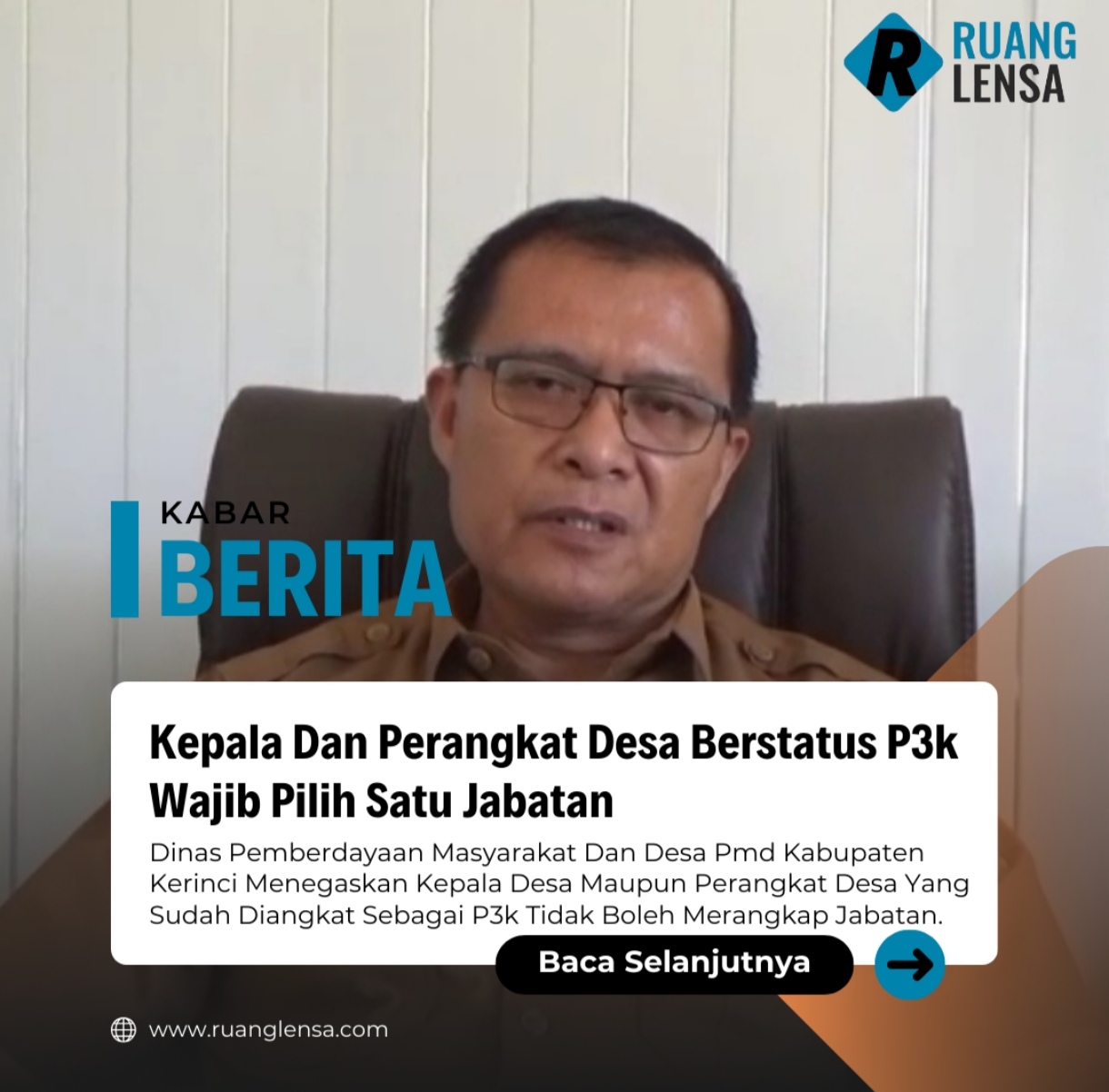 RUANGLENSA.COM, KERINCI – Sejumlah kepala desa dan perangkat desa di Kabupaten Kerinci yang berstatus Pegawai Pemerintah dengan Perjanjian Kerja (P3K) kini tidak bisa lagi merangkap jabatan. Mereka diminta segera menentukan pilihan, apakah tetap mengabdi di desa atau melanjutkan tugas sebagai P3K.