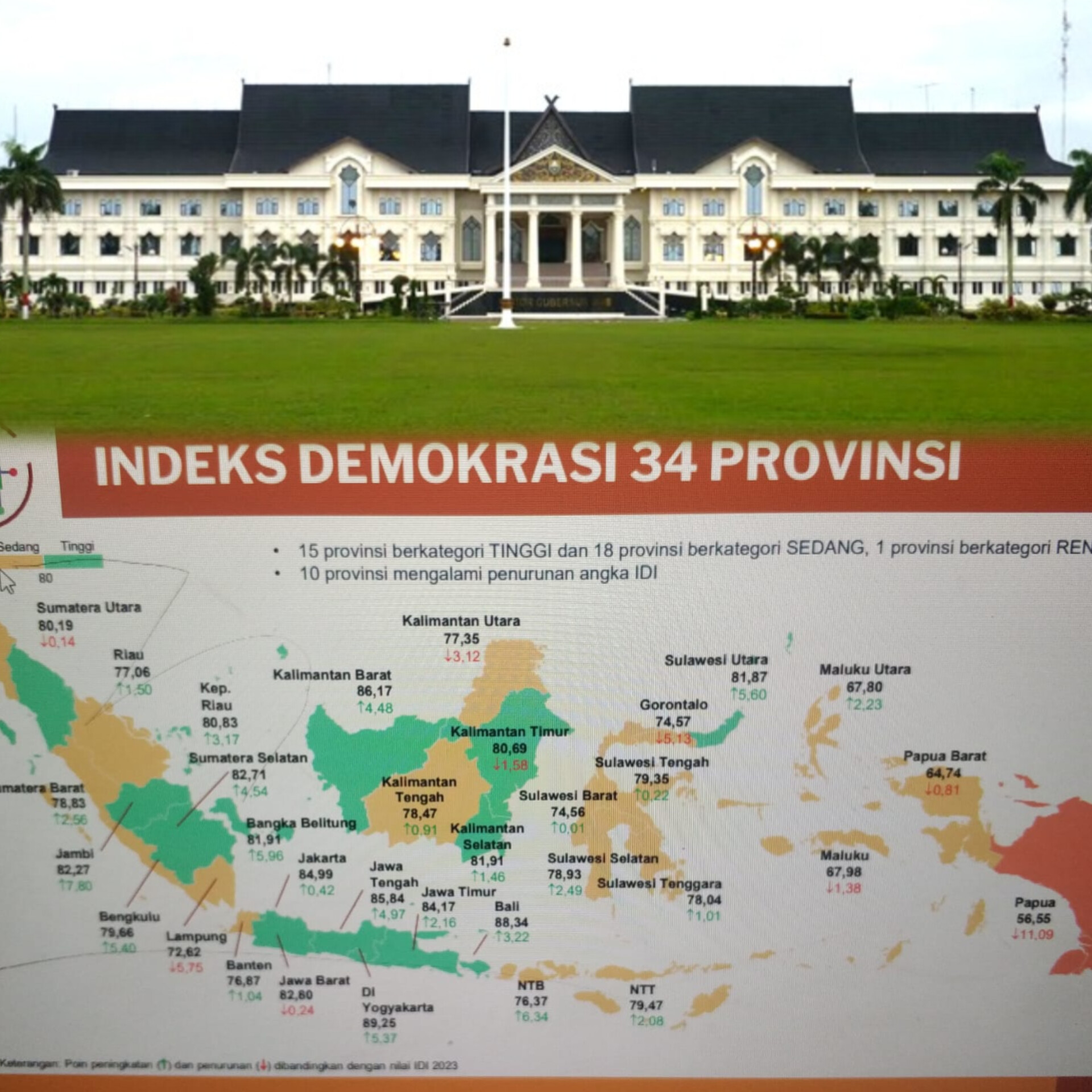Dengan masuk 10 besar nasional, Jambi kini menunjukkan posisinya sebagai provinsi yang mampu menghadirkan iklim demokrasi yang lebih sehat, terbuka, dan partisipatif. Peningkatan nilai tertinggi secara nasional juga menegaskan bahwa dinamika politik dan pemerintahan di Jambi berkembang ke arah yang lebih baik dibanding tahun-tahun sebelumnya.