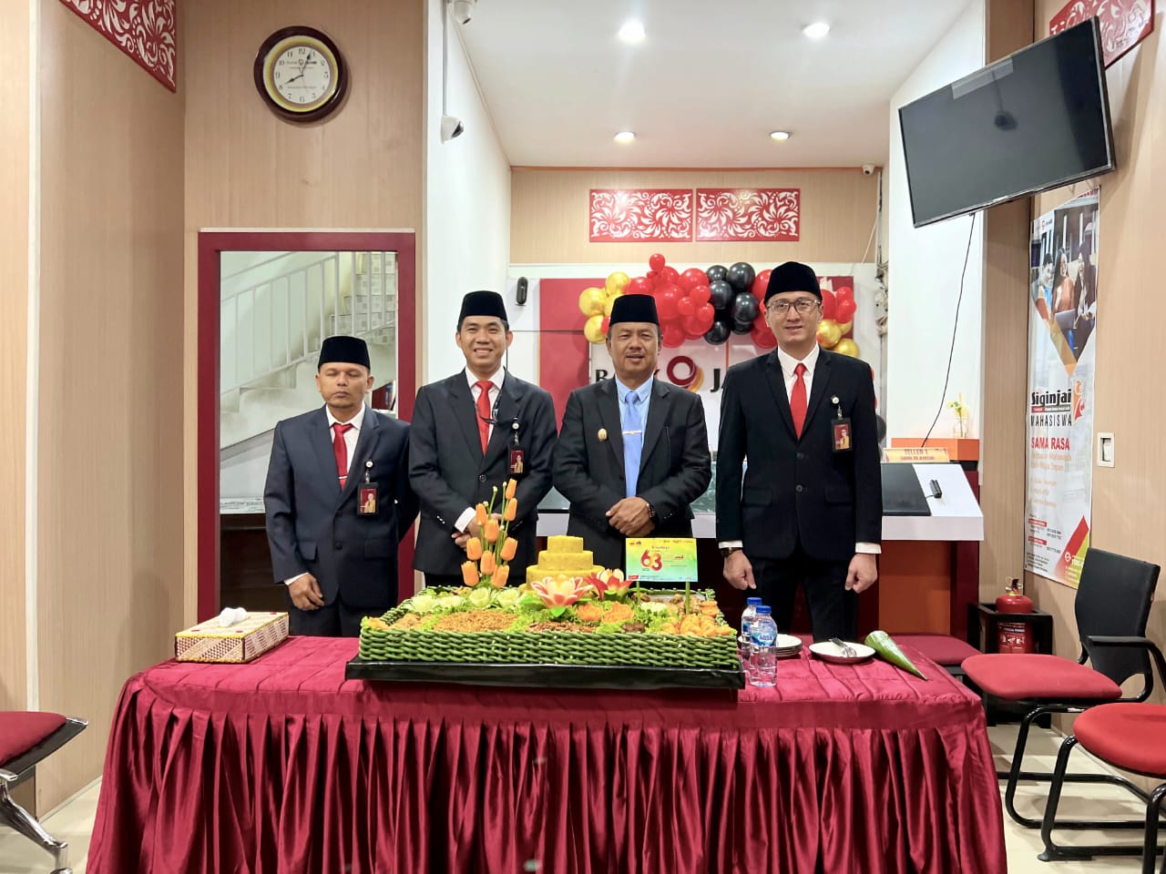 Peringatan HUT ke-63 Bank Jambi tahun ini mengusung semangat “Bangga Melayani”, sebagai komitmen Bank Jambi untuk terus memberikan pelayanan terbaik kepada masyarakat dan menjadi mitra strategis pemerintah daerah dalam mendukung pembangunan dan kesejahteraan masyarakat.